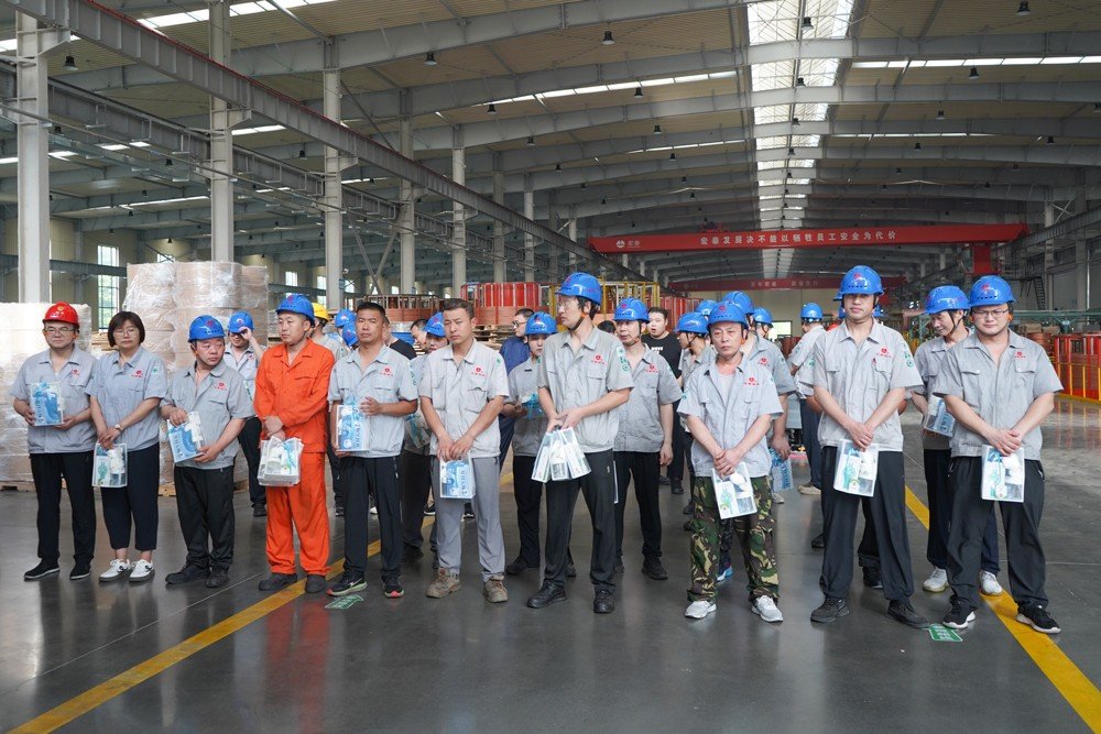 大暑至,萬物榮華。值此全年最熱時節(jié),同和街道辦事處心系企業(yè)、情牽職工,為宏泰公司一線員工送來了滿載關(guān)懷的“防暑降溫禮包”——不僅包含清涼甘泉,還有實(shí)用的解暑套裝。這份“清涼+守護(hù)”的雙重保障,已由宏泰公司高效組織,按照人人享有,獎勵先進(jìn)的方式精準(zhǔn)送達(dá)到員工手中。