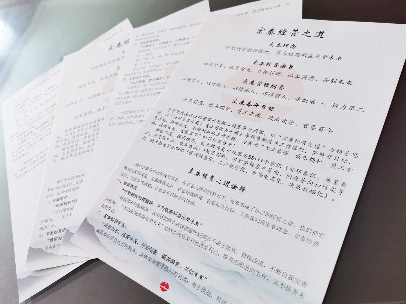 奮進(jìn)的道路上,李福鵬一直秉承“宏泰經(jīng)營之道”的指導(dǎo)思想。堅持“時刻擁有創(chuàng)新精神,不為短期利益出賣未來”的宏泰理念,本著利己不損人,堅持利他才能利己,合作才能雙贏的管理思維,積極落實(shí)5S + 四個意識 + 快樂創(chuàng)新;牢牢堅持客戶導(dǎo)向、問題導(dǎo)向和結(jié)果導(dǎo)向;重點(diǎn)聚焦法制第一和精細(xì)化思維工作方式,圍繞宏泰經(jīng)營宗旨和管理綱要的中心思想,逐漸使宏泰人形成人心思進(jìn)、團(tuán)結(jié)和諧、共促發(fā)展的良好氛圍,在穩(wěn)步推進(jìn)宏泰四化的基礎(chǔ)上,堅持穩(wěn)走四條道路:堅持宏泰經(jīng)營之道厚德載物,走員工幸福的道路;堅持把合規(guī)放首位,走穩(wěn)健經(jīng)營的道路;堅持管理信息化和生產(chǎn)數(shù)字化直至智能化的兩化深度融合,走分工專業(yè)化道路;堅持KPI考核,走績效管理的道路。