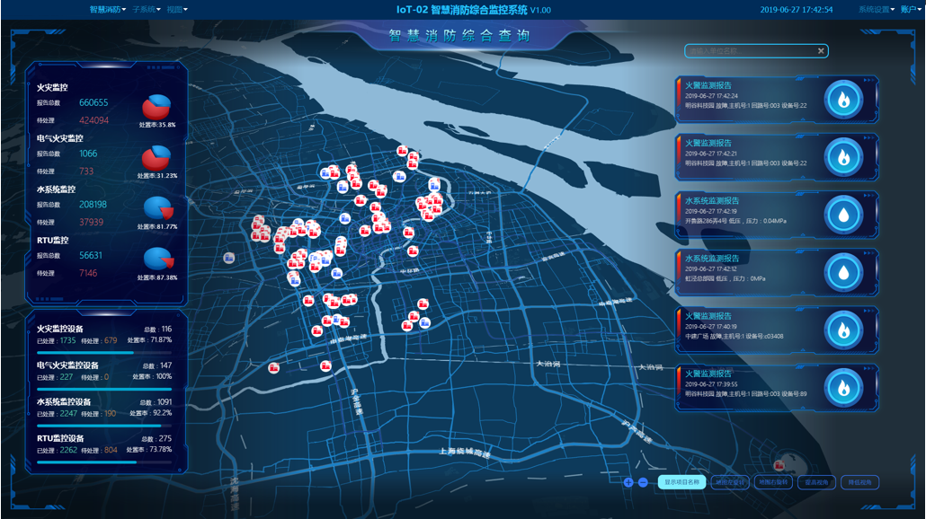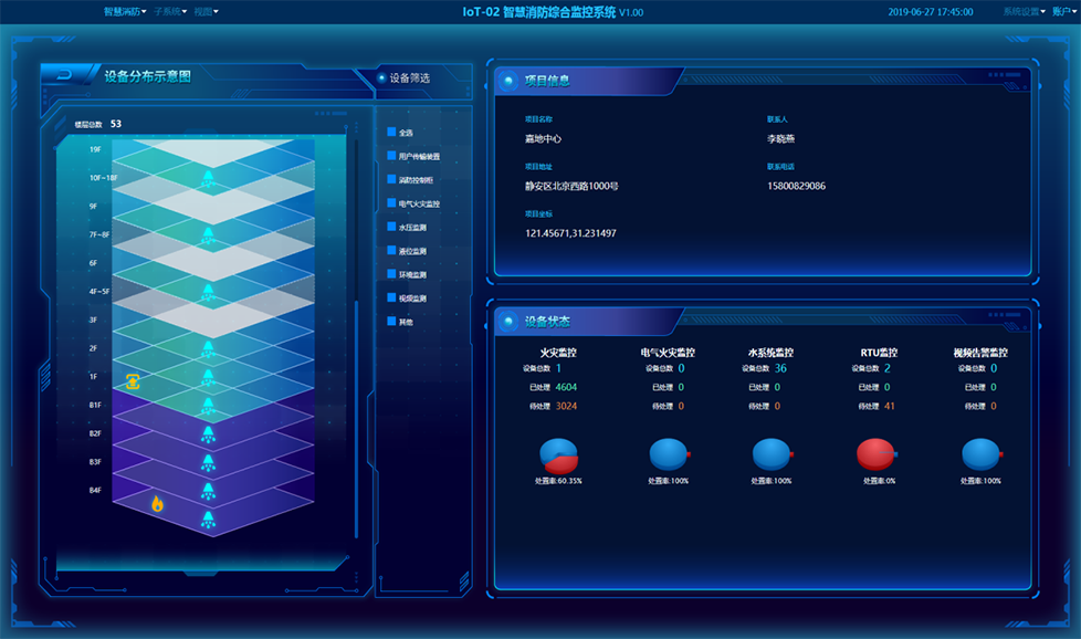 為項(xiàng)目配備智慧消防管理平臺,擁有消防設(shè)施設(shè)備管理功能,以及火災(zāi)報(bào)警監(jiān)測、水壓及水位監(jiān)測、水泵控制柜狀態(tài)監(jiān)測、巡檢任務(wù)監(jiān)測等七大應(yīng)用,搭配智慧消防硬件,提升消防管控水平。